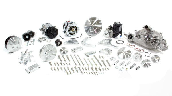 Pulley Kit - Performance Ratio - 2 Groove V-Belt - Aluminum - Clear Powder Coat - Small Block Ford - Kit