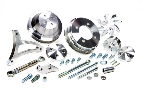 Pulley Kit - Ultra - 6-Rib Serpentine - Aluminum - Clear Powder Coat - Long Water Pump - Small Block Chevy - Kit