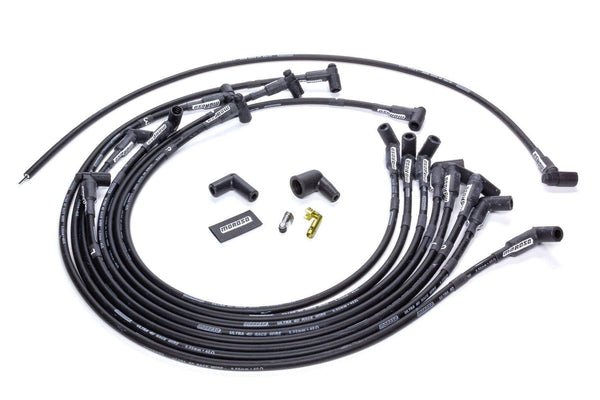 Spark Plug Wire Set - Ultra 40 - Spiral Core - 8.65 mm - Black - 90 Degree Plug Boots - HEI Style Terminal - Under Header - Big Block Chevy - Kit