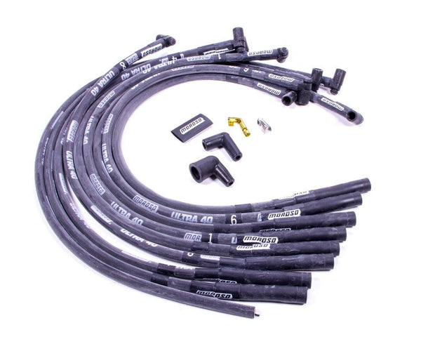 Spark Plug Wire Set - Ultra 40 - Spiral Core - 8.65 mm - Sleeved - Black - Straight Plug Boots - HEI Style Terminal - Over Valve Cover - Big Block Chevy - Kit