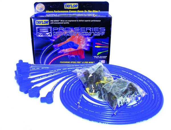 Spark Plug Wire Set - Pro Wire - Spiral Core - 8 mm - Blue - 90 Degree Plug Boots - HEI / Socket Style - Cut-To-Fit - V8 - Kit
