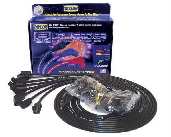 Spark Plug Wire Set - Spiro-Pro - Spiral Core - 8 mm - Black - 135 Degree Plug Boots - HEI / Socket Style - Cut-To-Fit - V8 - Kit