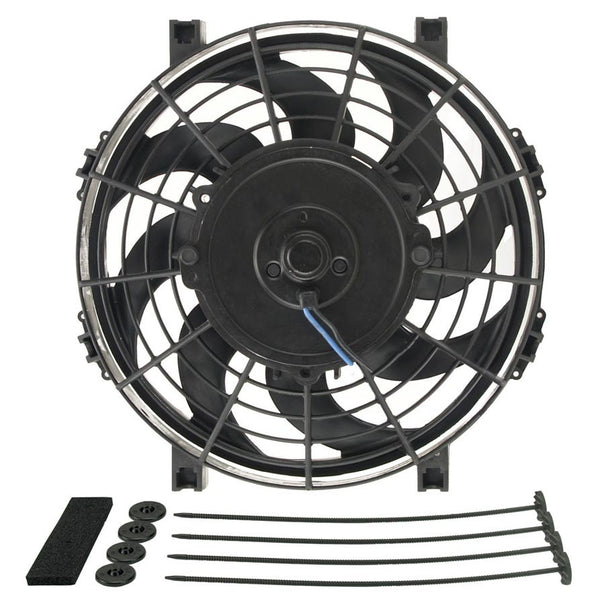 Electric Cooling Fan - Tornado - 9 in Fan - Push / Pull - 570 CFM - 12V - Curved Blade - 9-5/8 x 9-1/2 in - 2-1/2 in Thick - Install Kit - Plastic - Kit