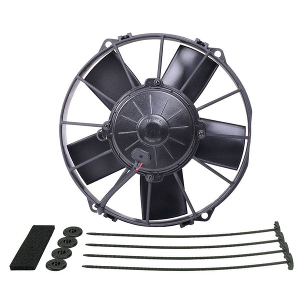 Electric Cooling Fan - High Output - 9 in Fan - Puller - 755 CFM - 12V - Paddle Blade - 9-3/8 x 9-3/4 in - 3-3/4 in Thick - Plastic - Each