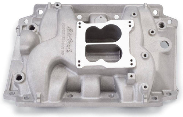 Edelbrock Buick 400-455 Performer Intake Manifold Satin Finish designed for street 400-430-455 c.i.d. Buick V8's. Manifold not equipped with EGR. Will fit cold air induction hoods. Will not fit Buick 350. Edelbrock's Patented Dual-plane, low-rise design with a 180-degree firing order greatly improves torque over a wide rpm range for excellent throttle response from off-idle through 5500rpm. The Performer intake manifolds are ideal for passenger cars, trucks, 4x4s, tow vehicles and RVs.
