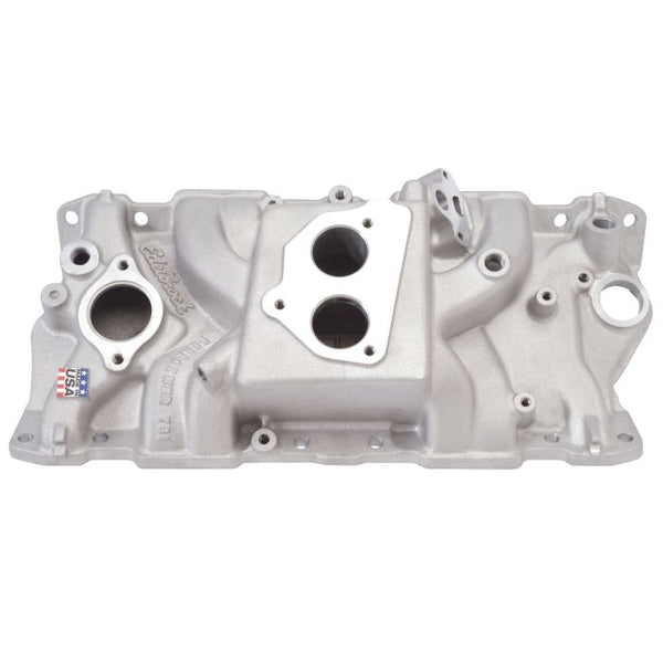 Edelbrock SBC 305/350 TBI Performer Intake Manifold designed for 1987-95 305/350 c.i.d. 5.0/5.7L Chevy throttle body injected (T.B.I.) engines. Accepts all OEM equipment and small-bore (1-11/16") throttle body injectors only. Will not fit Caprice or Buick and Cadillac "B" bodies.